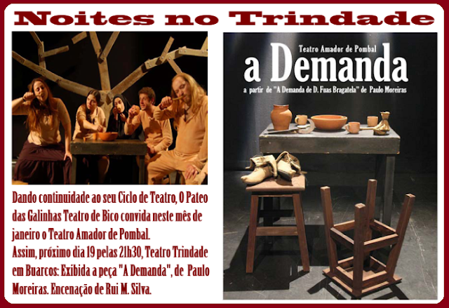 A peça apresentada será “A Demanda”, de D. Fuas Bragatela, de Paulo Moreira, pelo Teatro Amador de Pombal.